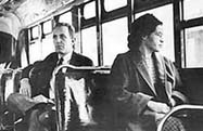 One day, Rosa Parks had so much courage and strength that when her bus arrived to pick her up, she got on the bus, put her money in the slot, and didn't move from her place on the bus when the driver told her to. Black people were supposed to sit in the back [and the "back" changed according to how many white people needed a seat]. The bus driver told her to move to the back, but she just sat there and refused to move. The driver called the police and they arrested Rosa Parks.