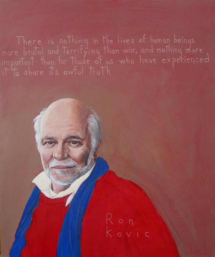 After Robert Shetterly met Ron Kovic in Los Angeles, he painted his portrait as part of the Americans Who Tell the Truth series: "There is nothing in the lives of human beings more Brutal and terrifying than war, and nothing more important than for those of us who have experienced it to share its awful truth."