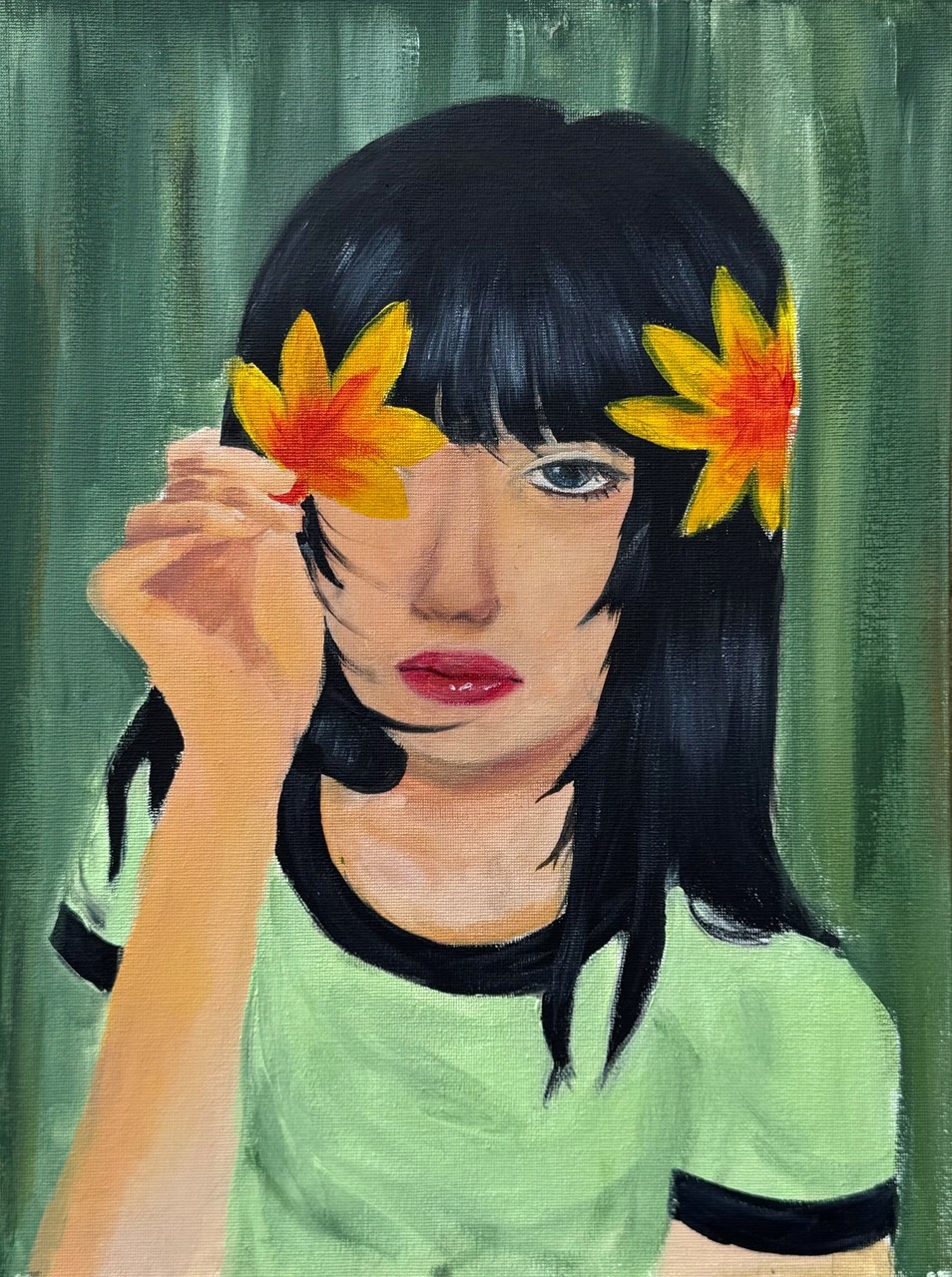 I Choose to Bloom - self-portrait painted in acrylic on a 12''x16'' canvas; Jan 2026, Auckland, New Zealand