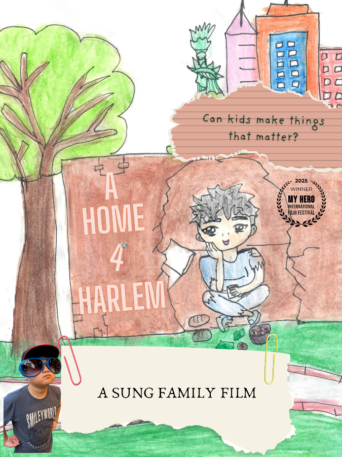 A Home for Harlem is about 8-year-old Harlem Sung, who lives in a cardboard box with his Mom in Central Park. His dream is to build his Mom a real home. Will Harlem be able to use his creativity to do what seems impossible? Find out in A Home for Harlem.