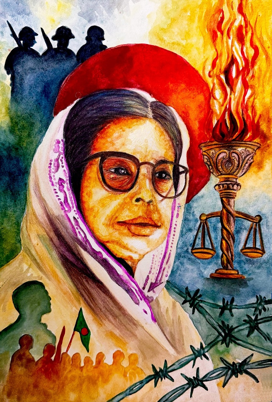 Jahanara Imam is my hero because she represents courage, determination, and bravery, and she fought for my country Bangladesh, despite all the hardships she faced. Even after losing her husband and son to the Bangladesh Liberation War of 1971, she refused to lose herself to her grief. Instead, she channeled her pain and continued to fight for justice, standing up against people of higher power, to demand accountability for war crimes against her people, despite the consequences of her actions. In the face of oppression and resistance, she used her words, wit, voice, and actions to make sure that no victim remained unheard, even at the expense of her own safety and stability. Her bravery in telling the truth, devotion to preserving the memory of those lost in the war, and determination to fight for what’s right - even when it meant risking arrest for treason - show me what it means to be a hero, and defend those who cannot defend themselves. She is nicknamed the “Mother of the Nation” and is recognized as a hero to all for her incredible selflessness and perseverance. She proves that even one person’s voice, no matter how small, can inspire a whole country. Her nobility encourages me to fight for what I believe in, no matter the cost, even if the whole world seems against me.