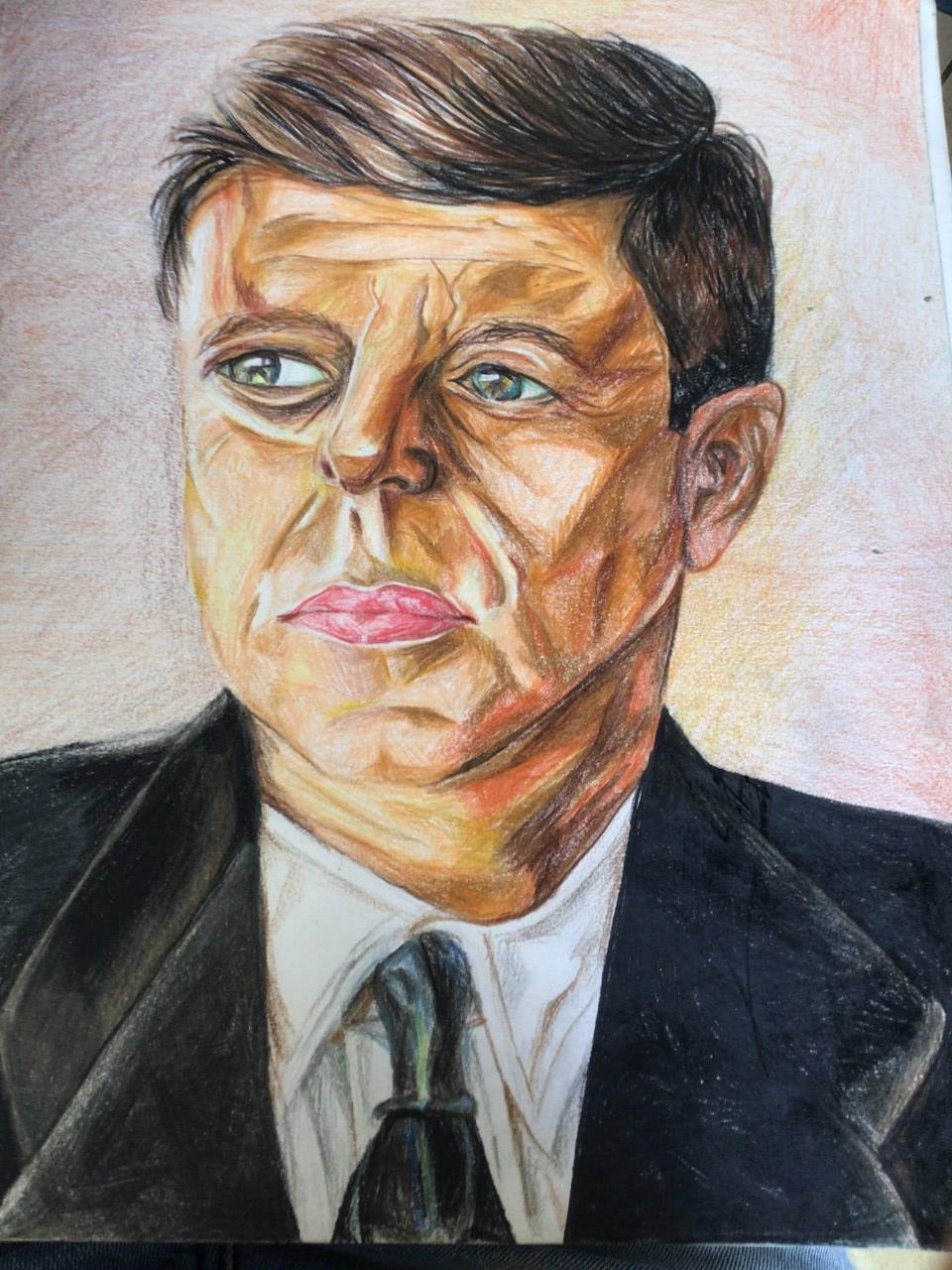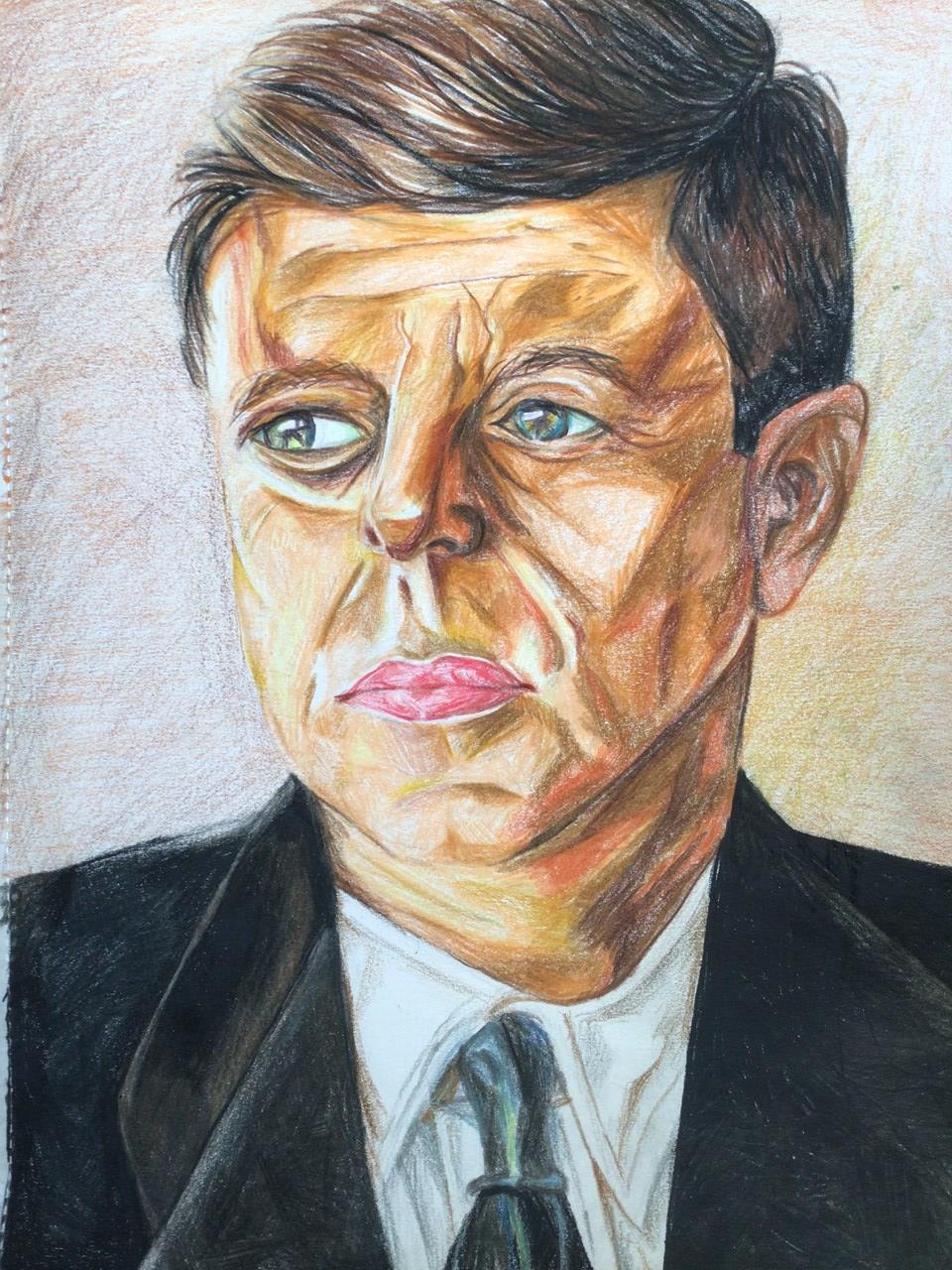 Color pencil portrait of John F. Kennedy, former president of the United States.