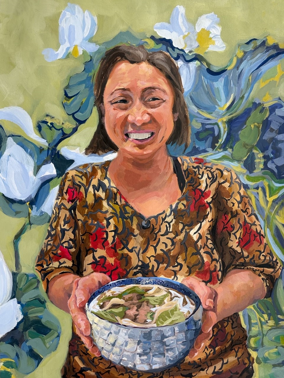 Despite countless arguments, disagreements, and moments of distance, one word lingers above all: Love. In each brushstroke, I commemorate everything she’s done for me: the meals she’s cooked, the nights she stayed up, and the sacrifices I only now understand. That “love” lives within every dish that she’s prepared, no matter the circumstance. This painting honors the first person who taught me the true meaning of love–the hero I'm proud to call my mother.