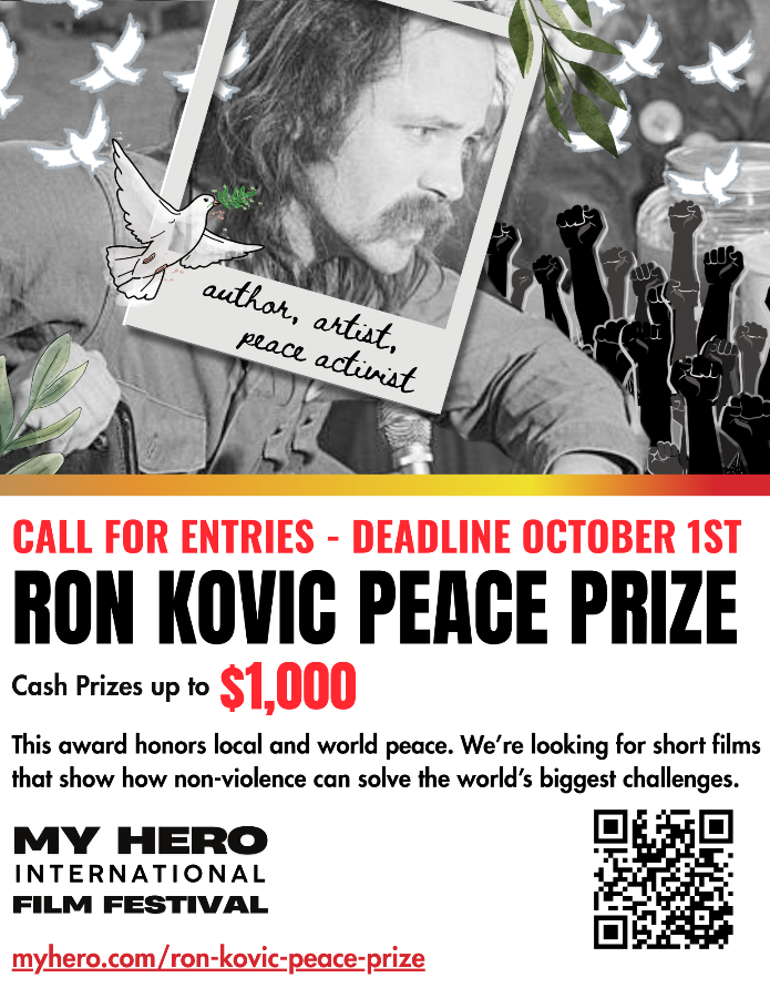 Submit your film to the MY HERO International Film Festival to be considered for the Ron Kovic Peace Prize!