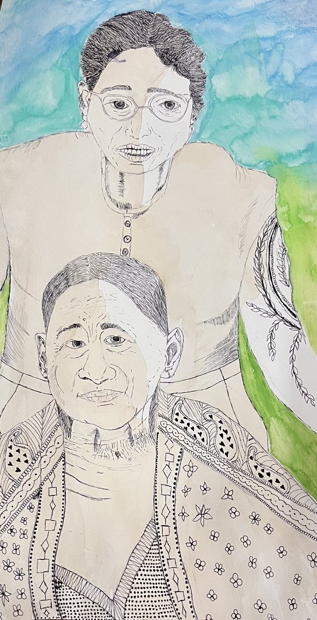 I choose to draw my mother (the one on the top) and my grandmother (the one on the bottom) because they are the ones who shaped my life in ways I can never fully repay. My mom always tried to do the best for me, even when she didn't get to stay with me much because she used to travel a lot due to her sickness. Despite the challenges of her health issues, which often kept her away for extended periods, she made sure I had everything I needed, emotionally, financially, and spiritually. She would call me every day, sending letters filled with encouragement and little gifts that reminded me of her love. Her sacrifices taught me resilience and the importance of putting family first, no matter the obstacles. Even in her absence, her presence was felt through the values she instilled in me, like kindness and perseverance. Drawing her at the top symbolizes how she was my guiding light, always lifting me up from afar.