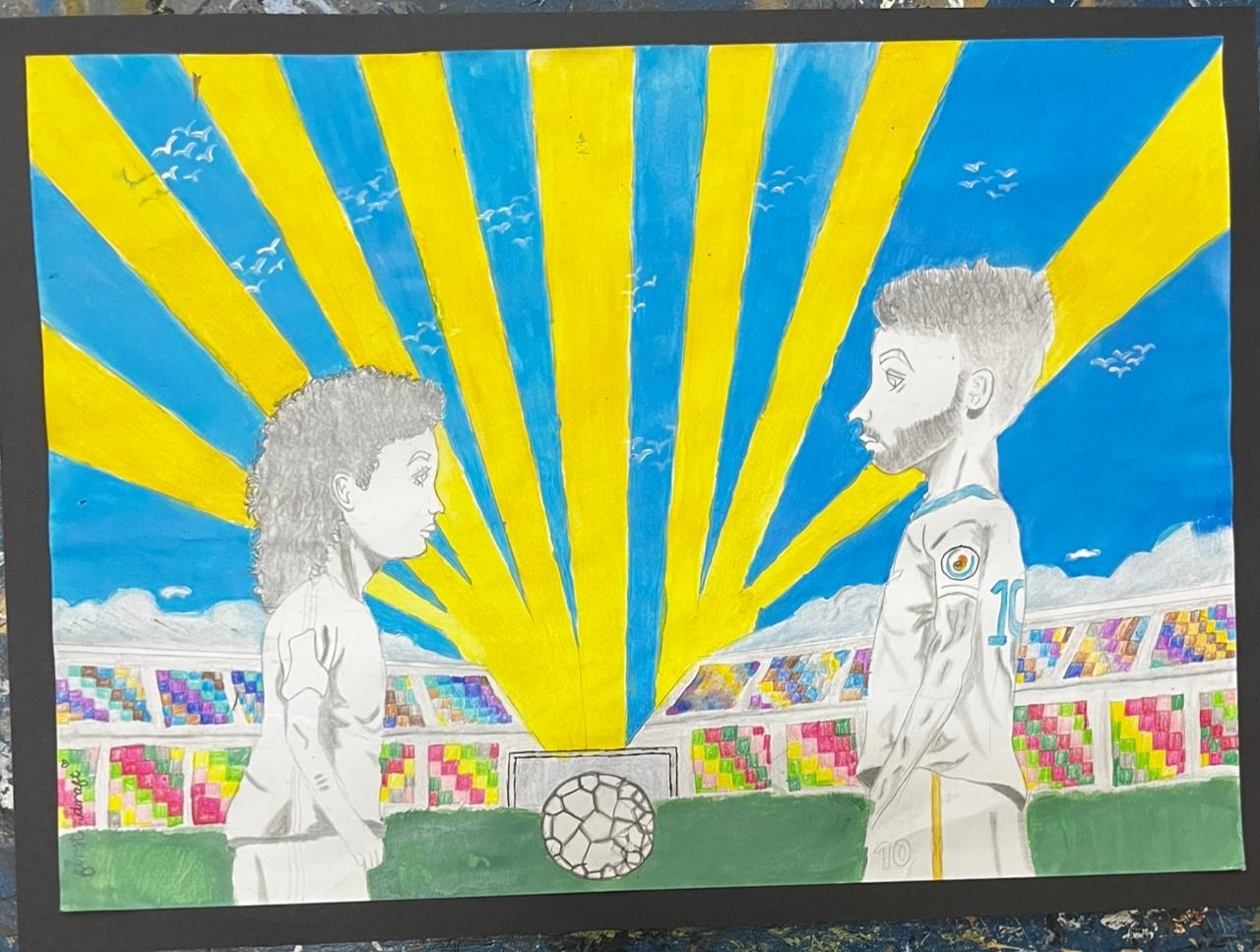 This artwork is inspired by the powerful emotions, unity, and drama found in the world of football. By placing two players face-to-face across the midfield line, the piece captures the intense anticipation that exists before a match begins.