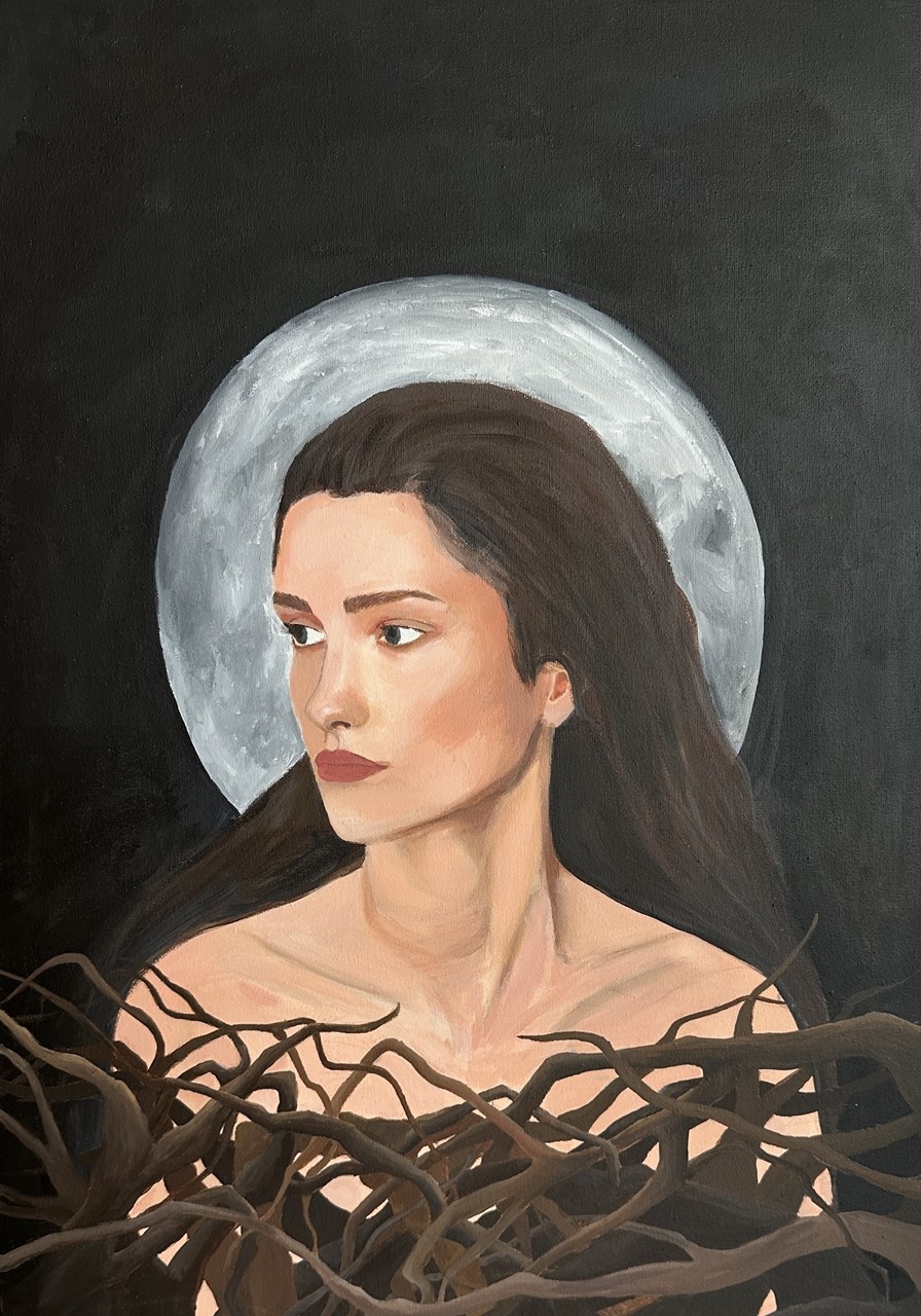 Umay Ana is a sacred goddess in Turkish mythology who represents fertility, abundance, and the protector of life. She is believed to protect children and women from evil; she symbolizes family order and the balance of nature. In mythology, she holds an important place as a force that facilitates childbirth, increases abundance, and protects life. The color white and the crescent moon are her main symbols. Like the moon, she is a source of inspiration that reflects the light of renewal, tranquility, and fertility onto the world. Umay Ana continues to be a cultural source of inspiration symbolizing the creative and transformative power of women in art, literature, and social awareness initiatives. Umay Ana is my hero and the inspiration for my artwork.