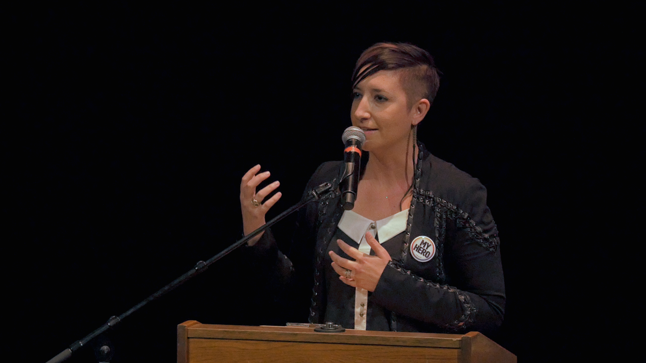 Alyse Nelson of Vital Voices Accepts 2017 Women Transforming Media Award at MY HERO International Film Festival.